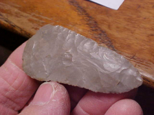 The group consists of four Gibson/ Posey County, Indiana, points--just decent points that are 100% authentic (and made of good flints). The stemmed point is the longest at 1&3/8"--it's somewhere between a hornstone and a river pebble that was put into service. The white/ tan Cornernotch is Early Archaic Culture, heat-treated flint, a nicely ground basal edge--not quite to 1&1/4". The final two are somewhere between 'stemmed' and Motley-based--seem to actually be the same flint when you study the colors seen in each one--nice "Birdpoints", REAL. $8.00 shipping, and I welcome checks, cash, or M.O.s, but please note that my store does not use paypal-type payment services--Roy A.