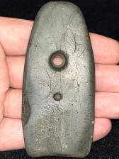 A fantastic Madison triangle found in Marshall County, Alabama. Made from glossy grey Bangor chert. Well made with great symmetry and sharp tip.