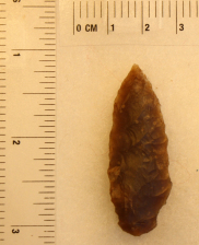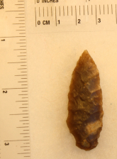 This little jewel was reclaimed in East Texas near Sam Rayburn. It is made from a brown river cobble. Interestingly it has diagonal flaking on one side.