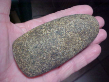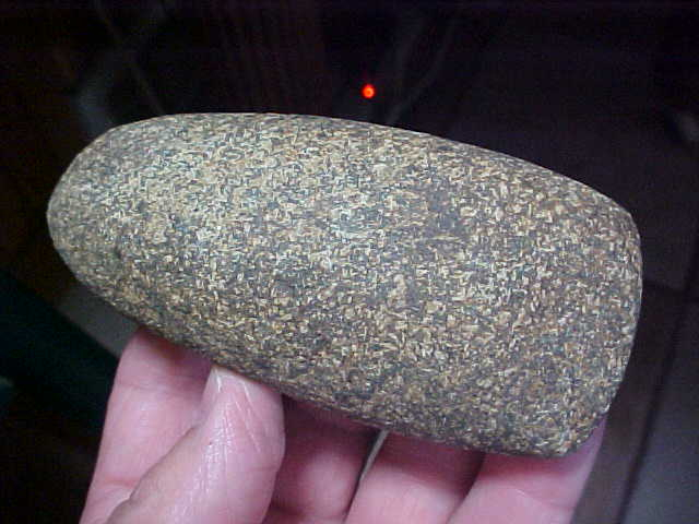 I pay the shipping on this Sangamon County, Illinois, Celt--4&3/16" by slightly under 2" width, a center thickness of 1&3/8". The piece is balanced, well formed with a good bit. The speckled granite shows strong patina. I haven't tried washing the piece so there may be some ground in soil, too. I keep thinking there's some provenance written on the Celt, but I haven't been able to read even one word--maybe it's just inclusions in the granite that resemble letters. Can't say, but authenticity I CAN say; guaranteed authentic in every detail. I welcome payments by check or M.O., but do not use paypal-type payments--Roy A.