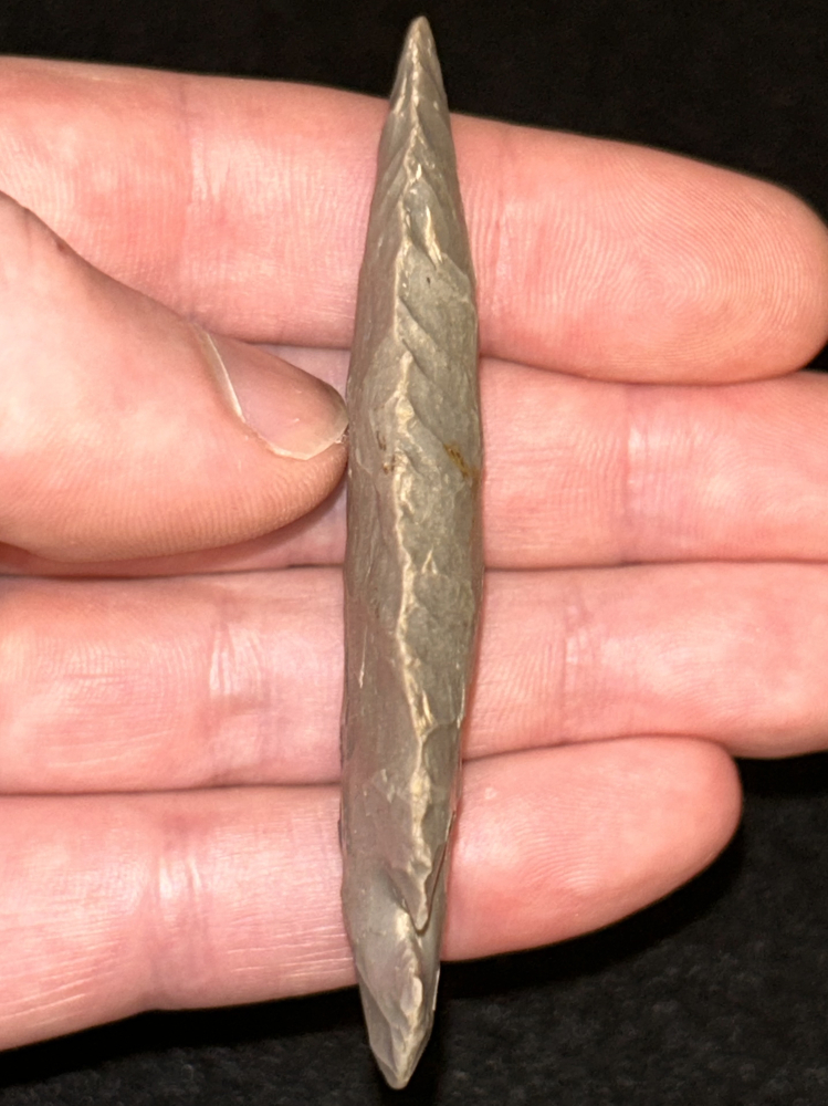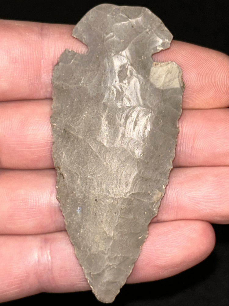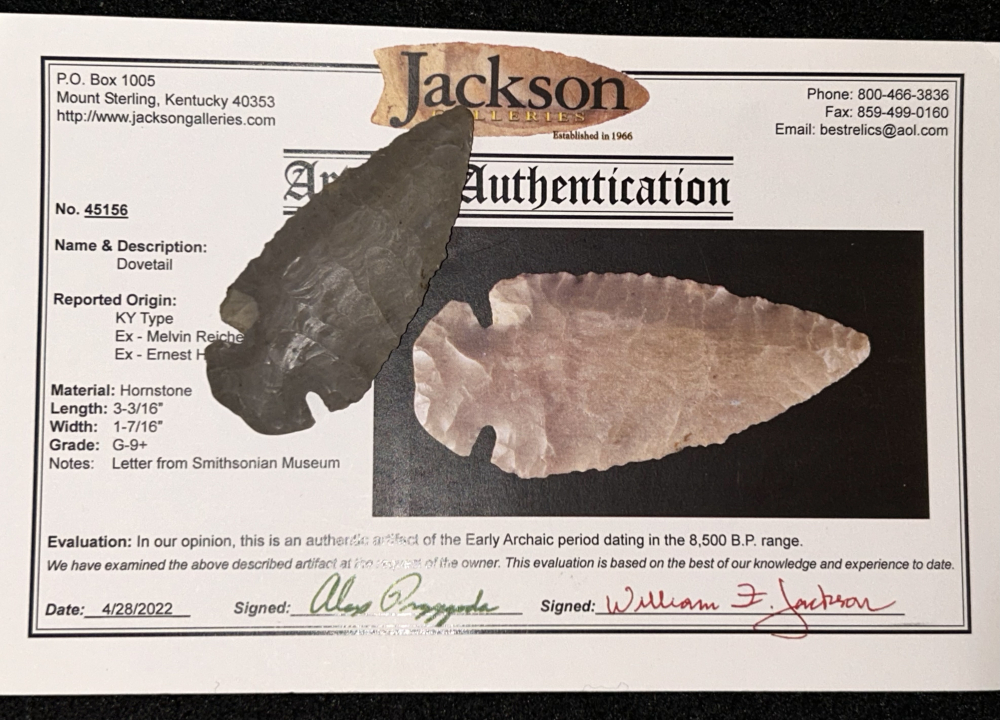 A fabulous Dovetail found in Kentucky. Made from well patinated glossy medium grey Hornstone. Nicely made with great form and beveled edges. Ex: Melvin Reichert, Earnest Hoxter, Lee Bailey, and Carrie Tanner. Also comes with a Jackson COA.