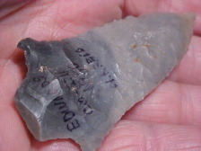Out of Edwards County, Illinois, a snap base Pickwick out of the old Indian Hill Museum (Norman Reid collection, marked as being found in 1950). The point is a very high grade of Indiana Hornstone, slightly under 3&3/8" by 1&1/2"--excellent width/ thickness proportions, never reaches 3/7" thickness, with 5/16" thickness for most of the long blade. The piece is NOT BROKEN--the ancient knapper worked to the very bottom of the flake he was working, ran short of material to fashion a full stem--you see the slightly angled fracture plane that was the edge of that starting preform where the stem ends. Mr. Reid's data is recorded (in ink) on one face--consider it ( the written provenance) permanent, ink simply soaks into flint, you don't ever fully remove writing on most flint--that goes for a small additional inked-over spot where Norman covered up some writing with a 'blot out' of ink--no idea why, he just did.. Shipping is $7.00, checks or M.O>s are the ways I welcome payment. Sorry, I do not use paypal--Roy A.
