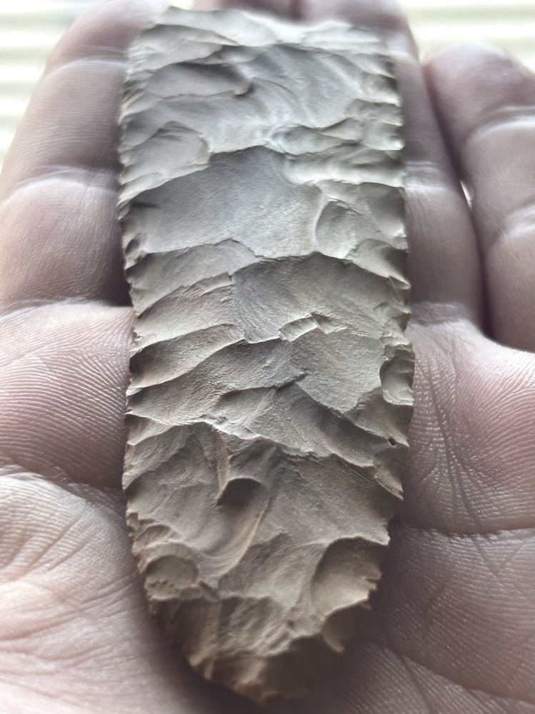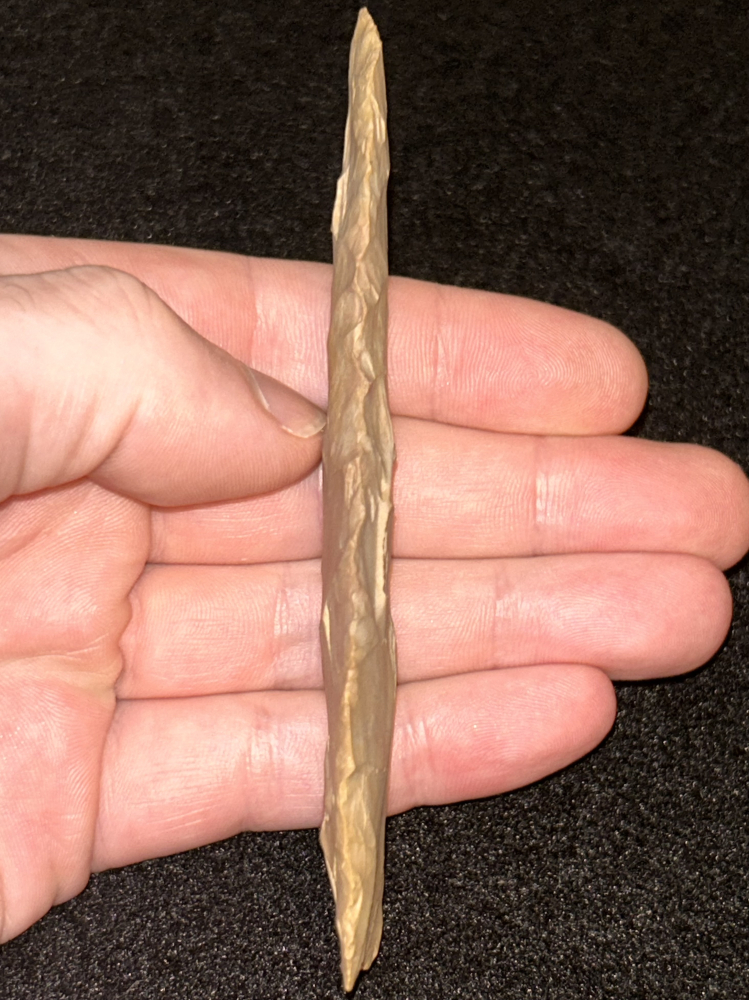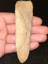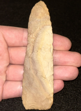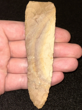 A fantastic Archaic blade found in Henry County, Tennessee. Made from very colorful Buffalo River chert. Super thin with excellent size.