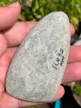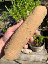 A 9” Sandstone Roller Pestle, this example has a double nutstone worked into one side and a single dimple in the other .