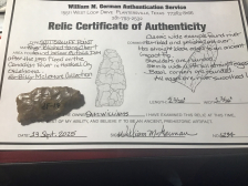 Provenance on the German coa for this Oklahoma Scottsbluff our of Billy McLemore's collection. It is a Classic, wide example with some river tumbling. All edges are river polished. I have the shipping.
