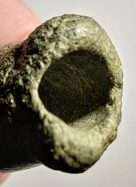 This is a spectacular example of a Large, Granite Tube Pipe of a West Coast style. It was in a Missouri collection and comes with a Jerry Dickey COA. Mr. Dickey feels that this is a West Coast style pipe. Regardless of its origin, it is a unique and rare type of artifact.