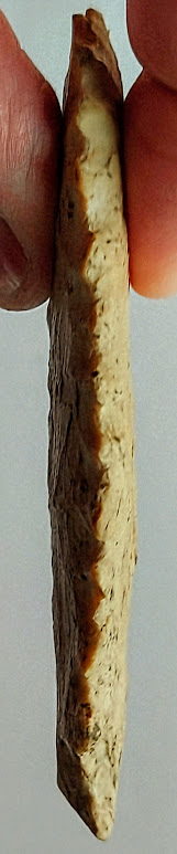 This highly unusual Serrated Kirk Corner Notch could almost be called an eccentric due to the deep notching all around the blade. It was found in Benton Co., Tennessee, and comes with a Dwain Rogers COA. Don't let this unique item get away!