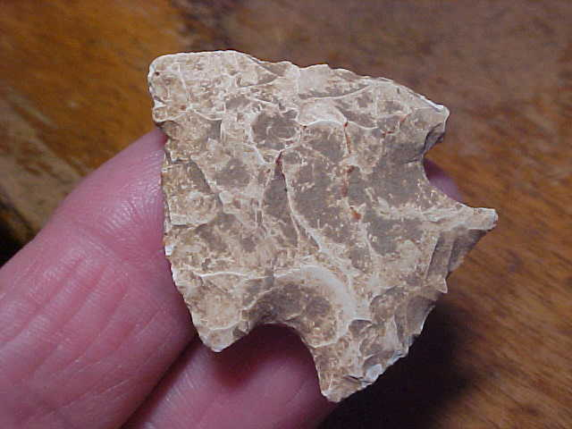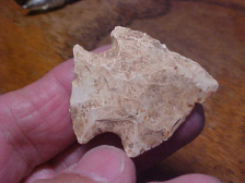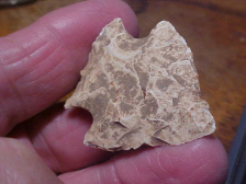Okay, so the title is a backhanded way of saying the Sangamon County, Illinois, finder never bothered to clean this Burlington Chert Snyders--why present it THIS way, well, you see the piece exactly as it was found--no mystery, it's as though the point had just been found (it's out of an estate, so that's not 'technically' true). That's an authenticity I can deal with. Length is 1&5/8" by 1&7/16"--based off the really wide base I would expect the point was two--maybe even three times the present length as it was first made. Shipping is $8.00. I welcome checks, money orders--or cash, but I do not use paypal-type services--Roy A.
