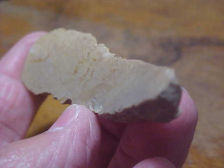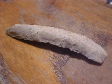 One of the best 'Ridge Back" Paleo work tools I've had in-hand lately--a Southwest Indiana find made from a hornstone/ cortex flint, 3&3/4" by 1" with that semi-curved shape, scraper tip to deliberately flat 'heel'. On what I'll call the 'spatulate end' you'll find Paleo use polish on either side of the "V" shape. What I'll describe as 'heavy polish' also is found on the flat side of the narrow end--see the photos, the flint has a gloss from extensive use/ wear. As found on many Paleo ridgeback tools the 'ridge' is a deliberately flat--almost 'fluted' channel--hopefully the photos will show some of those features. The only damage is a small surface flake in the center of the inside edge, you can contrast the patination of a chip versus the surrounding heavy patina---sometimes a chip, a ding, it shows you the authenticity better than any description I can provide. Shipping is $8.00 with checks or M.O>s the ways you can pay. Sorry, I do not use paypal-type services--Roy A.