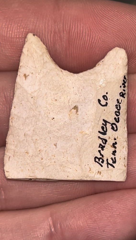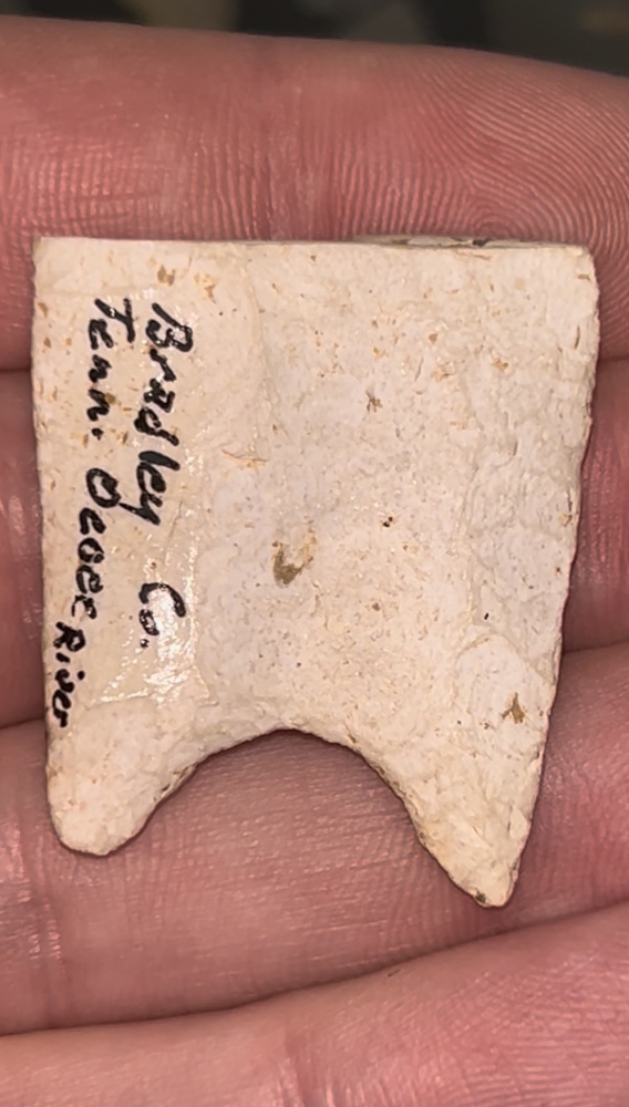 A fabulous partial St Louis style Clovis found in Bradley County, Tennessee along the Ocoee River. Made from a very heavily patinated white chert. Awesome form with great fluting and grinding.