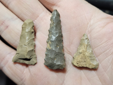 Very nice lot of three ft ancient period points. All were found in Southern Ohio and the serrated one is particularly nice. Largest measures 1 1/2 inches long.