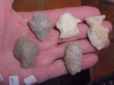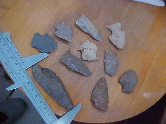 Ten points found around the Monticello, Indiana, area-- area flints like Kenneth Chert, some hornstone that made it that far north, and some Burlington Chert that strayed east--interesting, low priced, authentic. The longest is the Hornstone knife at slightly under 3&1/8". Shipping is $9.00, checks, cash, or money orders any of the three are welcomed. Sorry, I do not use paypal-type services--Roy A.