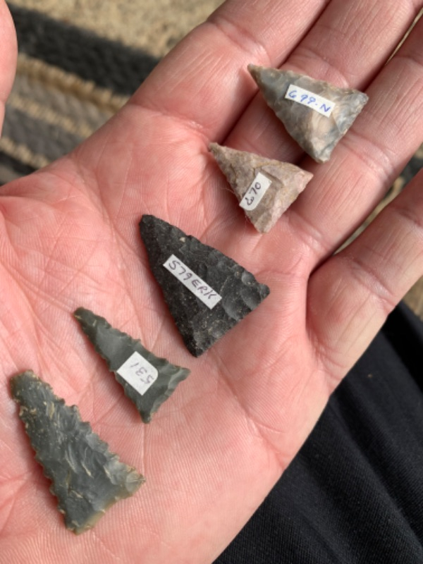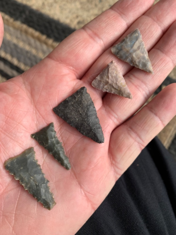 3 are Madison style and 2 are serrated fort ancient style points . The largest one is around 1 3/8”