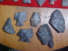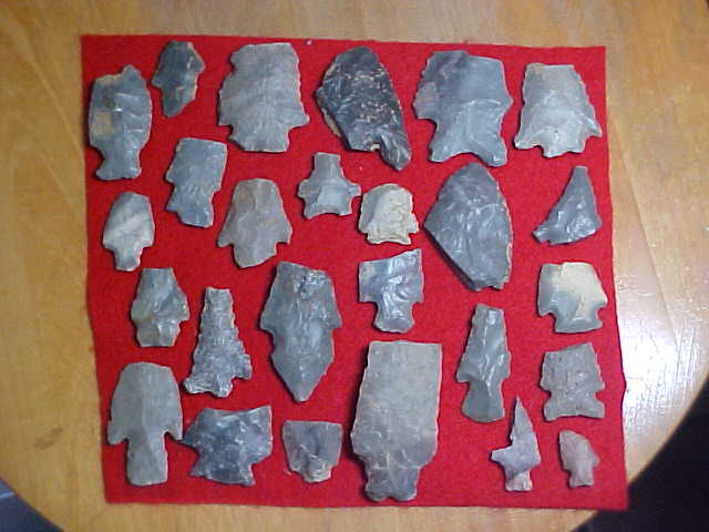 A frigid morning, nothing better than to pull out a box of Daviess County, Kentucky, flint, see what remains--most are Indiana Hornstone (the flint source not that many miles up the Ohio River in Leavenworth, Ind.), and then some Sonora Flint (5 or 6 pieces are Sonora, pictured separately). You'll spot a few Late Archaic (Turkey Tail), and a couple small Rivertons, a Buck Creek along with some other Woodland types--again, a separate picture, but it's the Early Archiac point type bases that are--at least to me--the most interesting to study. When you know what a 1000% real Early Archaic base looks like you can always adapt that knowledge to more complete pieces---that's how I was taught, at least. Any questions you might have, hey, send them by Email, text, or "Ask seller a question" link--I'll do my best to answer. Shipping is $11, checks, cash, money orders are the three ways I take payment. Sorry, I do not use paypal-type services--Roy A.
