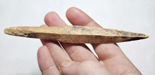 Fine bone projectile point from Northern China. Nicely made point with a neat cross section and high median ridges. Made by the Liao Dynasty, they were known for having ancient workshops setup to manufacture these for warfare and or hunting. Largely made from antler and horse bone. Measures 5 inches long. Highly recommended for your foreign frame!