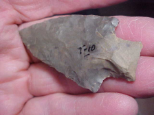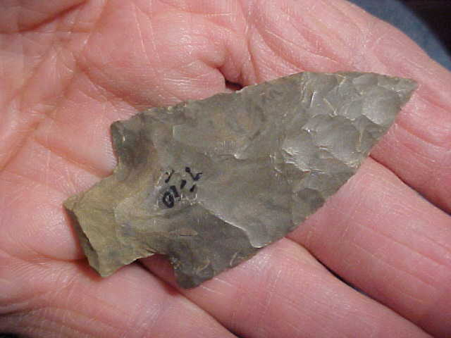 A nice piece of hornstone, this Buck Creek/ Smithsonia Late Archaic-into-Woodland time scape point. The chipping is the percussion work--with some pressure retouch--on the blade edges--very well made, very sharp point--and being that "later" timeperiod, a very sharp basal edge. For their own reasons, basal grinding wasn't ordinarily used. The piece is out of a Tipton County, Indiana, collection, well made and 100% guaranteed real. Shipping is $8.00, checks or M.O>s are welcomed. Sorry, I do not use paypal-type services--Roy A.