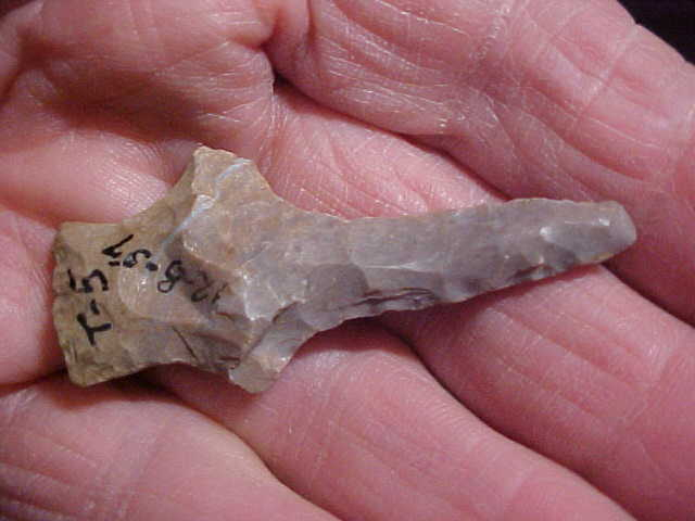Out of a Tipton County, N.C. Indiana, collection, NICE piece of chert--Liston Creek if I have the identification correct--color, 'waxiness', fracture planes match up with that chert type from north-central Indiana. The piece started off as a Pickwick Point, then use and sharpening of wear resulted in a drill form--very decent drill form. Length is just short of 2&1/4" by 1" width across the barbs, a 5/16" max thickness. The stem, base and sides, have light edge grinding. The finder marked the piece as a 1957 find--well made, real, the two things that matter most. Shipping is $8.00, checks, cash, or money orders are how I welcome payments. Sorry, I do not use paypal-type services--Roy A.