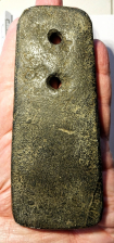 This large, polished, 2-hole, Woodland Pendant is made of a hardstone. It was found in Spencer Co., Indiana, and comes with a Ben Stermer COA. This is a very large example of a hardstone pendant and is very collectible.