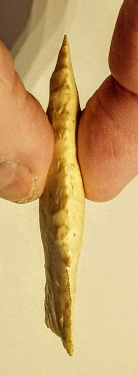 This is a small but very well-made, serrated, and beveled Hardin point from Boone Co., Missouri. It is made from Burlington chert and comes with a G8 Tom Davis COA. This point also comes with a Provenance Sheet from a prior collector indicating it was formerly in the collection of Dr. Guy Gross. This is a first-class Hardin point and has it all!