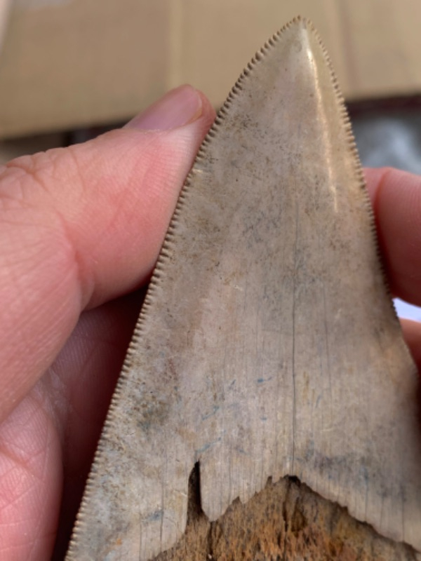 A 4” Indonesian Meg t@@th, this example has good size and nice super sharp serrated edges