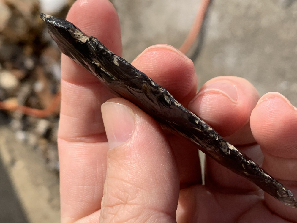 A 3 1/8” Fine large Obsidian Point, this example is made of completely transparent obsidian .