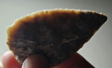 Excellent Hopewellian blade from Posey Co, Indiana. Very nicely made and thin on a gorgeous piece of derby chert with bursts of yellows and mottling. Measures 2 1/2 inches long by 1 3/8 inches wide. Definitely a Southern Indy gem!