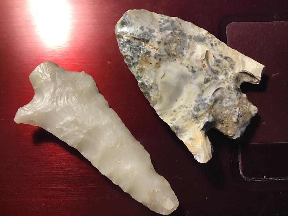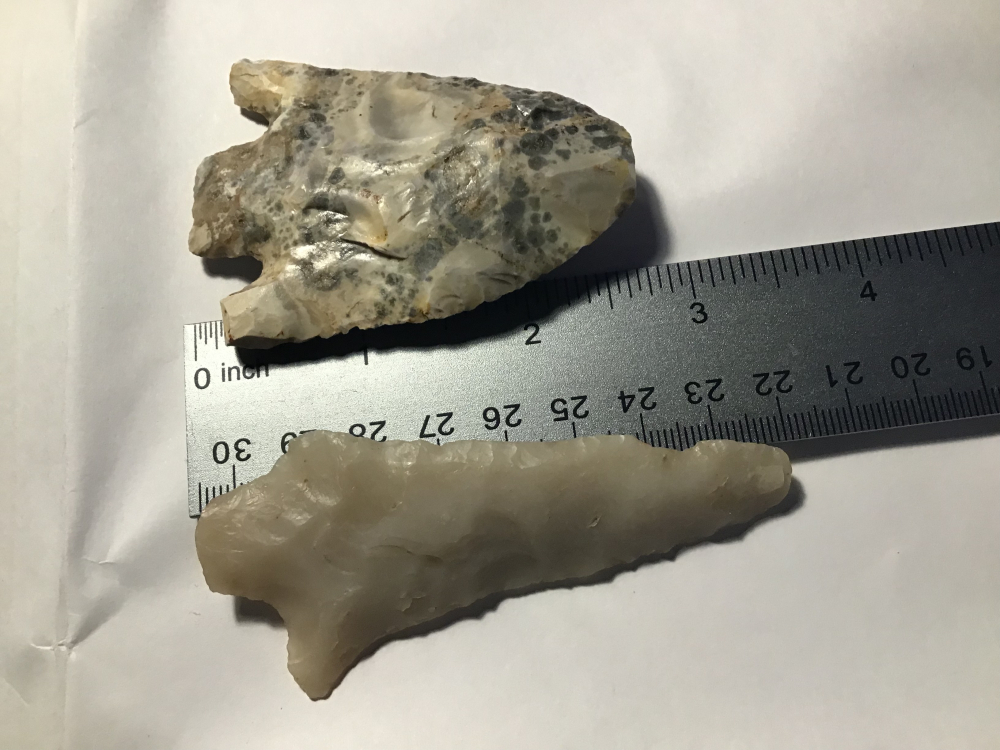 This is a pair from East Texas one of Novaculite the other probably a spotted Smith Point both with damage. I have the shipping and will guarantee authenticity and satisfaction.