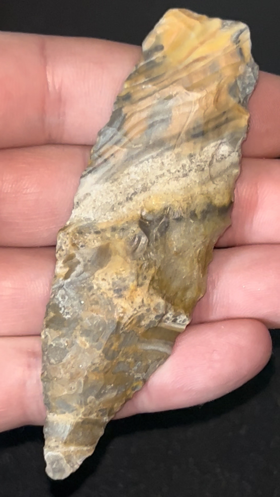 A fine Sedalia found in Pettis County, Missouri. Made from incredibly colorful creek stained Mozarkite. Nicely made with good size.