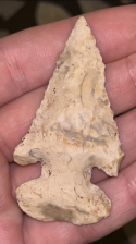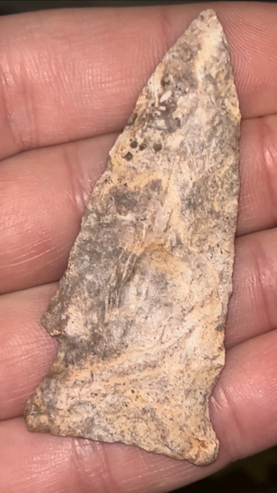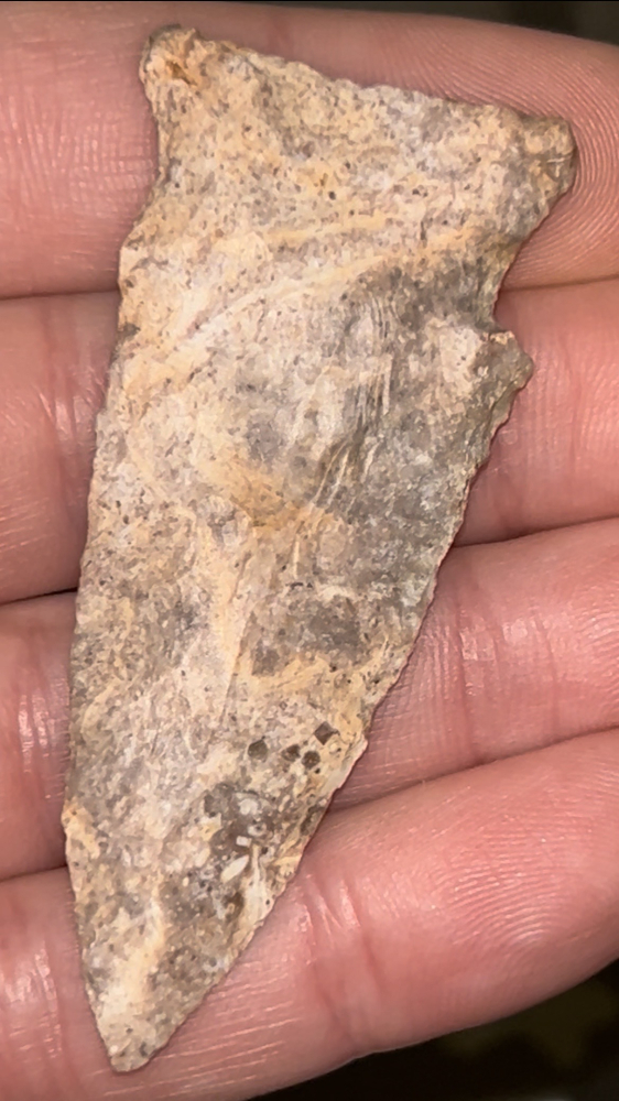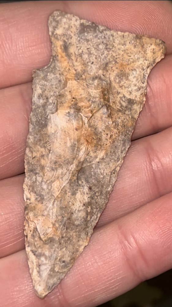 A super nice Rice Side Notch found in Cooper County, Missouri. Made from colorful heat treated Burlington chert. Nicely made and in good condition.