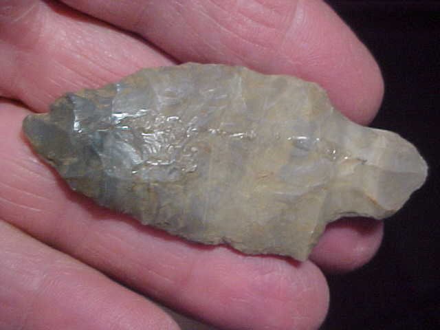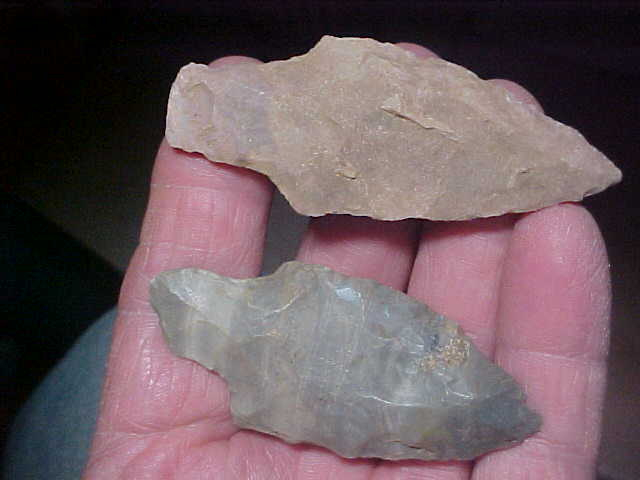 Decent, authentic points that were glued to a display board for years--some glue residue needs to be soaked off--the Turkey Tail is a banded Hornstone,2&3/4", and the square stemmed Adena is "chert", something the Woodland hunter found and utilized there in Sangamon County, Illinois, the origin of the pair--right on or above 3" in length. Buy both for $40, or pick one for $20--your choice--tell me which way you want to go, I'm easy to work with--Shipping is $8.00 either way (the box is mostly what USPS charges for anymore. I welcome checks, cash, or money orders, but do not use paypal-type services--Roy A.