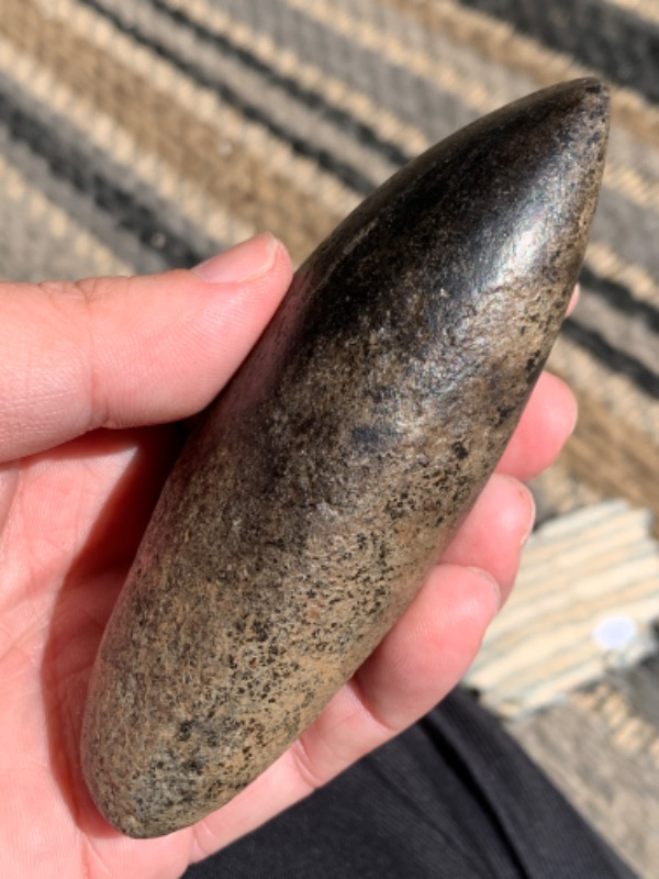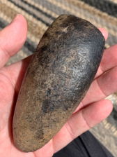 A 4 1/2” Heavily creek stained Celt, this example has nice polish and a good bit, and apparently was exposed to a creek or a river for along period of time .