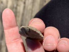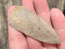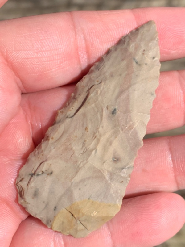 A 2 3/4” Cobbs bevel blade, this example is greenish gray color, kinda looks like St. Louis green Chert, but idk .