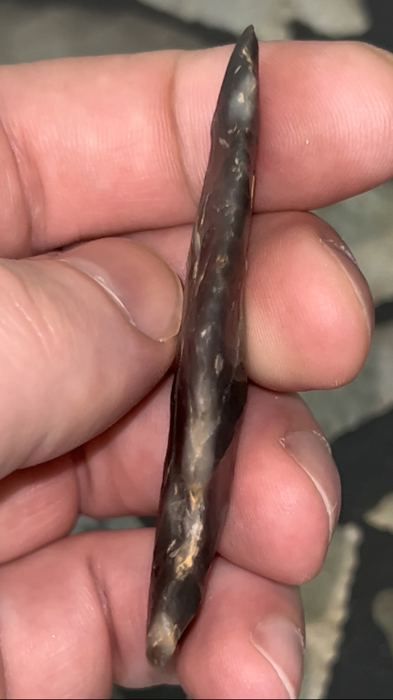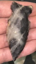 A fine Graham Cave found in Arkansas. Made from beautiful black and white spiderweb Novaculite. Well made and thin.