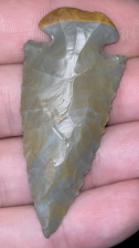A superb Dovetail found in Webster County, Kentucky. Made from beautifully water patinated glossy Hopkinsville chert. In fine condition with excellent workmanship, symmetry, and form. Ex: Doug Underwood, Aaron Kilander collections.