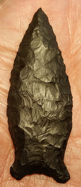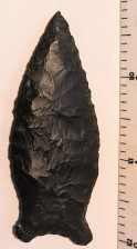 This superb example of a Beaver Lake point is made of a deep, black chert. It was found in Daviess Co., Kentucky, and comes with a Dwain Rogers COA. Don't let this highly symmetrical and well-flaked Paleo piece get away!
