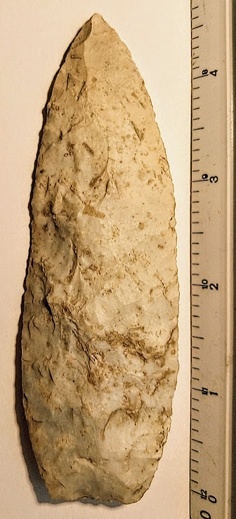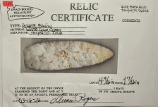 This large, well-flaked Agate Basin point is made from Burlington chert. It was found in Jasper Co., Iowa, and comes with a Dwain Rogers COA. A great addition for your transitional Paleo frame!