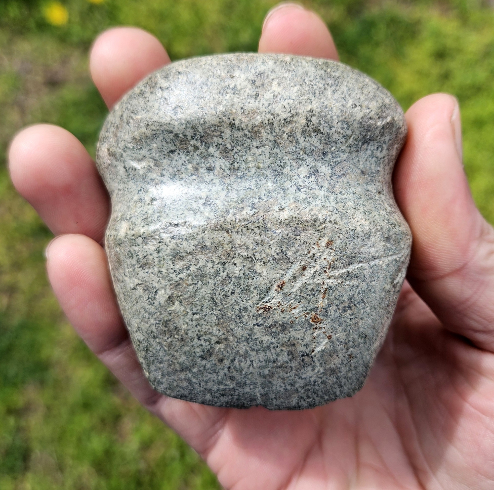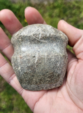 Very nice full groove pocket axe from Posey Co, Indiana. Has undergone resharpening but form has been maintained throughout the process, similar to a miami river axe. Very attractive granite. Measures 2 3/4 inches long by 2 3/8 inches wide. Great addition to your hardstone!