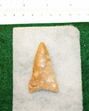 This artifact has taken on a pale yellow finish as well as a nice river sand polish.