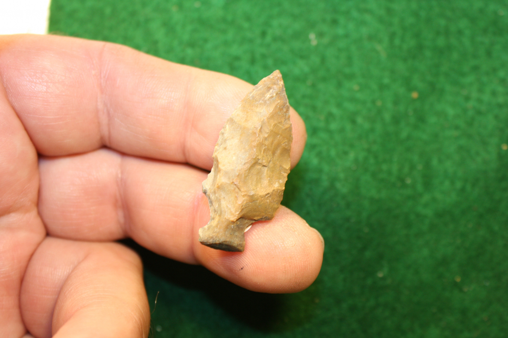 This was a personal find on a shell midden in Coastal Chambers County, Texas. Flint and tool stone is not available in the upper coastal counties of Texas and it had to be traded in. Many points and knives were used to exhaustion before lost or discarded.