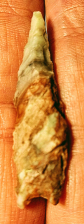 This highly beveled Dovetail is made out of Hornstone. It has been reworked several times reducing its length but still retains the coveted Dovetail form and base. It was found in Indiana and comes with a Josh Davis COA.