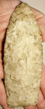 This authentic Slate Knife was found on St. Lawrence Island, Alaska. It is 6" long and thin for its size. Some cleavage on one side of base as shown in pictures. Altogether a great Eskimo artifact with a 30 day guarantee.