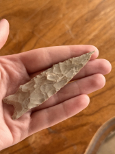 The chert is a heat treated Burlington recovered near the Arkansas River in Osage County, OK out of the Lyle Nickols' collection. It is colorful, well flaked and thin. Part of the Hopewell Culture, it has a Bill German COA and I have the shipping.
