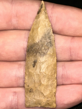 A fine Adena Blade found in Jefferson County, Kentucky. Made from high quality deep grey Hornstone with an attractive cortex tip. In great condition and finely made. Ex: Zach Smoot collection.