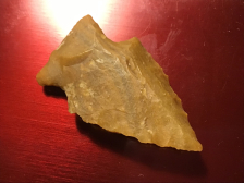Made of coastal chert this Pickwick is brightly colored with a pressure flaked lateral edges. It has a small nick on one barb. I have the shipping and will guarantee authenticity and satisfaction.
