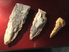 The base is heavily ground with a material color change. It has a nice median ridge on both sides made of Colorado River Gravel. Semi-translucent, it has fine flaking and comes with a Carlos Black coa. I have the shipping.