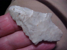 Made of an excellent grade of Hornstone, 3&8/8" by slightly over 1&1/2", a center thickness of 3/8". The patina is there, the knapping is exactly right, not one detail is out of line on this lifetime guaranteed authentic Turkey Tail. The piece comes from Bath County, Kentucky, and that was the only provenance the last owner provided, ether he (or bought) the piece, I can't say--it's real, period. These Harrison-type Turkey Tails, they started as (sometimes) inch blades, even wider than this present width, then were worked (sharpened) to get the final form, the wide 'shoulders', narrowing to the tip. Here, the tip shows use wear, whether from cutting or gouging--this was a work knife, it SHOULD show use wear. Any questions, feel free to ask--but if the question is "Would you take..." no, I wouldn't--the piece is well worth the asking price. I welcome payment by check or money order, but do not use paypal--Roy A.