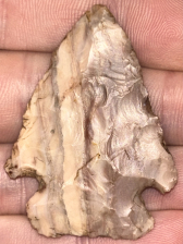A very nice Pinetree found in Walker County, Alabama. Made from light grey-brown Fort Payne chert. Well made with good flaking and symmetry. Ex: Robert Overstreet collection of the Overstreet Identification and Price Guides.