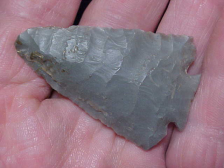 Only the impact fracture Bakers Creek/ Lowe is actually marked as being an Illinois find, but I've long-learned that some collectors (good intentions) never get around to marking the provenance on their finds--you can assume the other eight are Gibson County, Indiana, but some of those could also be 'Illinois side of the stream' finds. Seventy-five hundred years ago (the snap base Dovetail on the lower left), you moved back-and-forth across a stream to hunt as needed--no state boundaries to concern you. The 2" almost bevel-sharpened hornstone point is another from the same time period. One of the most colorful is a heavily heat tempered (red) Fossil chert stemmed point, Woodland, a Motley or Buck Creek point type. One I consider most interesting is a Broad Base Big Sandy (side notch) Hafted Scraper/ Blunt, basally ground, showing lots of scraping use to the work edge. The 1&3/8" Kirk Stemmed Bifurcate may be the most complete--and best made--some artistry in the way it was made. All are 100% guaranteed authentic. Shipping is $9.00 with checks, cash, or money orders being the ONLY three payment options on my store--Roy A.