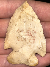 A fantastic Little Bear Creek found in Madison County, Alabama. Made from nicely patinated light grey-brown Fort Payne Chert. In fine condition with good flaking and sharp tip. Ex: Robert Overstreet collection of the Overstreet Identification and Price Guides.