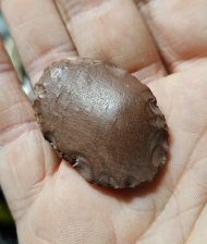 Nice Oshara point from the bajada cluster, and is from Mesa Co, Colorado. Very nice transitional point with great flaking and heavy basal grinding on a nice piece of silcrete. Measures 2 inches long. Neat piece.